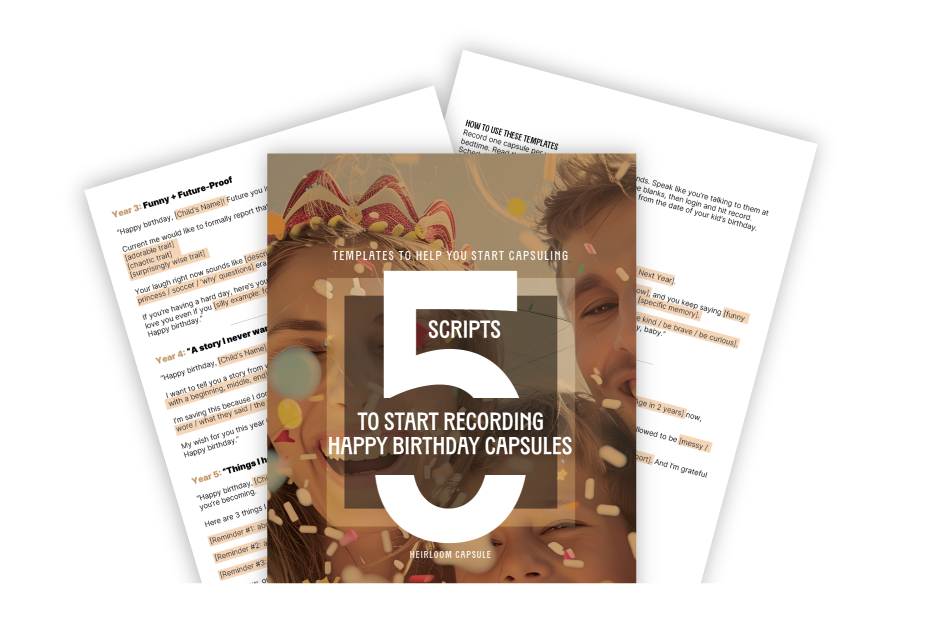 We’ve prepared 5 scripts that easily help you fill in the blank to create a perfect, heartfelt capsule for your kiddo in 5 minutes flat. Enter your email and we will deliver them to you, immediately!